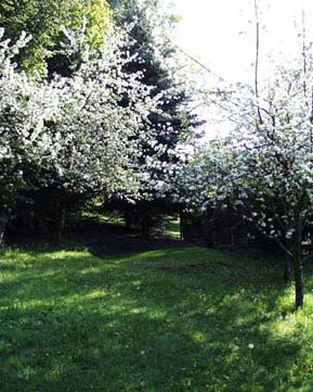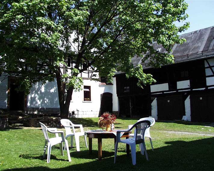 Es gibt natürlich noch ein Grundstück dahinter, was sehr ruhig liegt und zur Entspannung einlädt .