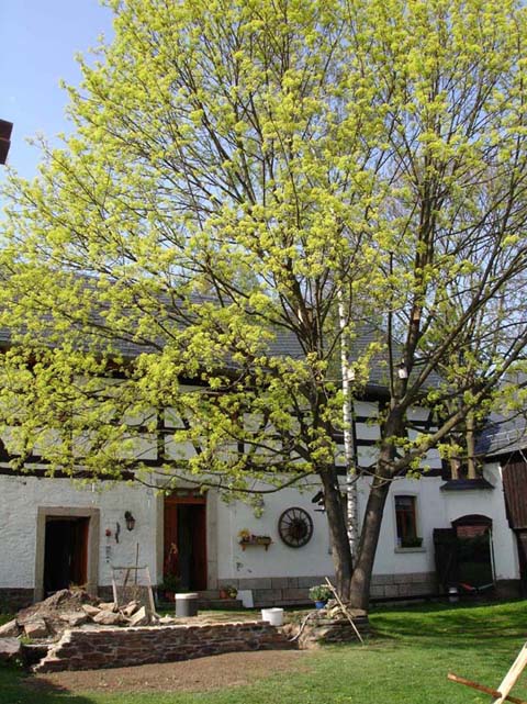 Meine Natursteinmauer nimmt unter unserem im Mai blühendem Ahornbaum auch ganz langsam Gestalt an.