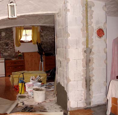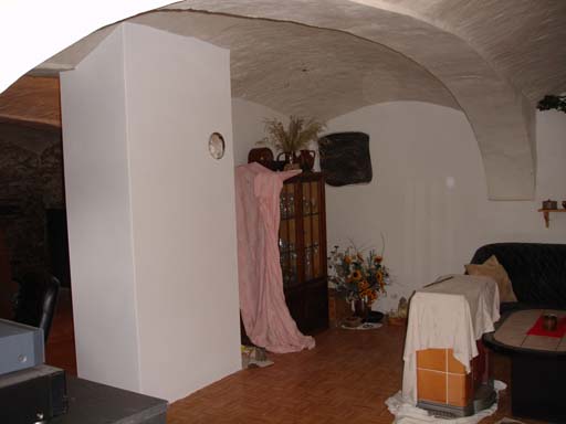 Zuhause wieder zurück war der Akku natürlich wieder aufgeladen. Also gab ich unserer Esse und Dachsäule im Kuhstall ( Wohnzimmer ) ein neues Putzgesicht.