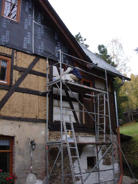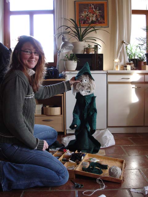 Meine Ivonne setzte noch etwas Fachwerk mit Gasbeton zu und widmete sich dann der Erschaffung eines Moosmannes. Es ist später natürlich ein Pärchen geworden !