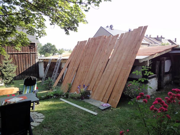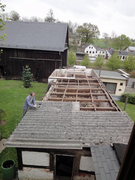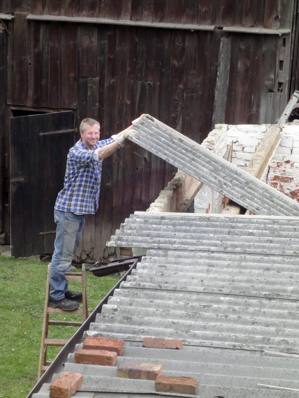Also einfach anfangen, der Rest ergibt sich von alleine. Frohen Mutes begann ich mit dem Abriss des Eternitdaches.