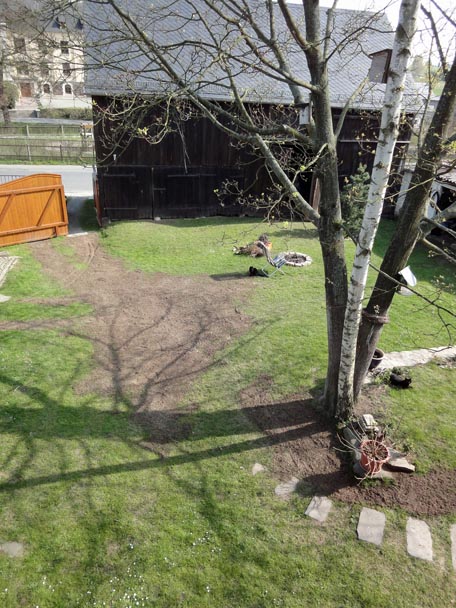 Um meinen kleinen Traum vom grünen Hof aufrecht zu erhalten, wurde vom Komposthaufen Erde durchgesiebt und im Hof verteilt. Allerdings beanspruchte meine Ivonne ziemlich viel vom Durchgesiebten für ihr Beet und sonstige Anpflanzungen ( für Gemüseanbau und so 'n Vitaminzeug ).