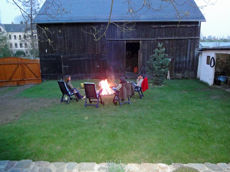 Am ersten Lagerfeuer des Jahres reifte dann unter Zuhilfenahme einiger alkoholischer Getränke ein kleiner Plan. Wenn man am Nebengebäude, soweit es maximal möglich ist, alles selber macht, wäre das Dach und die hintere Wand eigentlich keine so große Investition. Vor allem kann man kein Geld für sinnlose Sachen ausgeben, weil während des Baues gar keine Zeit für so was ist. Man könnte somit sogar dabei etwas Geld sparen, um unseren Kredit abzuzahlen. Und ein paar Ziegel und Bretter kosten doch nun wirklich nicht die Welt.
