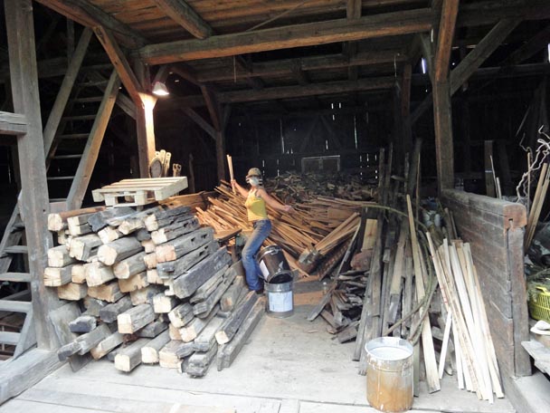 Die abgerissenen Balken des Flachdaches taugen jedenfalls nur noch als Feuerholz. Einiges davon jedoch nur noch für das Lagerfeuer, unser kleines Krematorium für Holzwürmer.