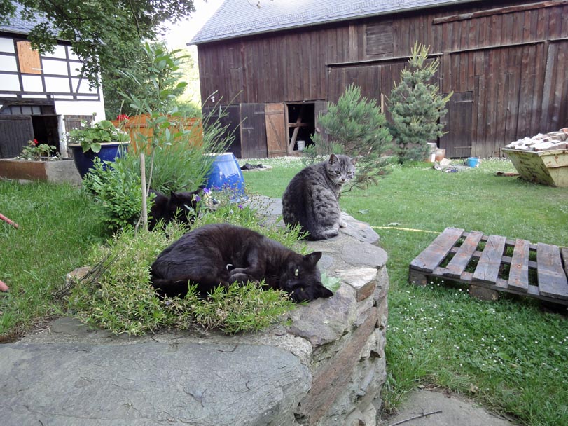 Unseren 3 Miezen ging es auch gut. Sie hatten was zu beobachten und rekelten sich in der warmen Frühjahrssonne. Einmal Katze sein ! - Obwohl - die Kühlschranktüre bekommen sie nicht auf !