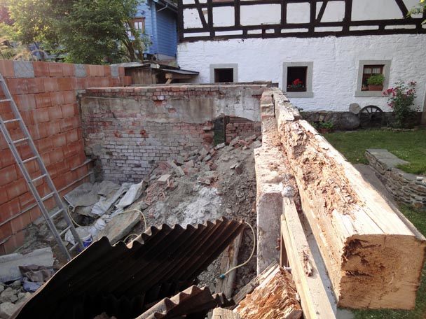 Der alte Balken zur Hofseite zu war jedenfalls nicht mehr zu gebrauchen.