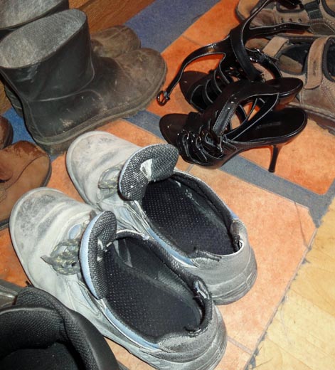 Wenn ich früh auf Arbeit gehe ist es jedenfalls interessant zu sehen, was rechts neben seinen Bauschuhen für " Schuhe " stehen. Luise heißt seine holde Maid - er legt wohl lieber wo anders Hand an - Lümmel.
