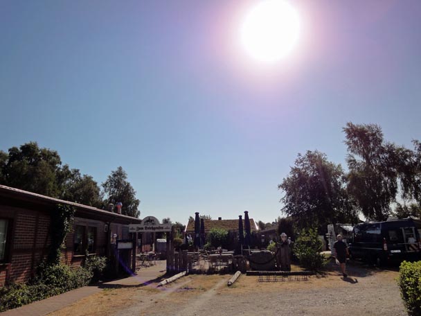 Links unten im Bild die Gaststätte auf unserem Campingplatz. Anfänglich hatten uns die etwas hohen Preise abgehalten, hier mal einzukehren. Aber mittlerweile besuchen wir sie jedes Jahr, wenn wir hier sind. Für mich fast nicht nachvollziehbar, das es so eine Gaststätte mit höchstem Niveau auf einem Campingplatz gibt. Sie ist immer gut besucht und im Umfeld von Zingst als besonderer Tipp bekannt.
