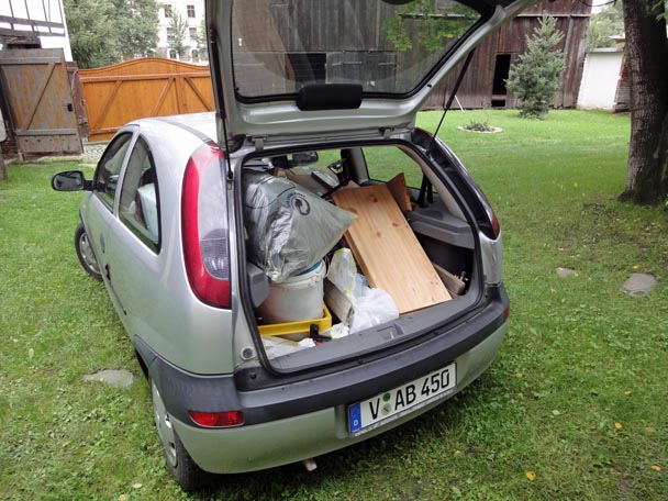 24 Stück gingen jeweils in den Hänger. In den kommenden Wochen wurden wir Samstags bei unserem Händler nicht mit "Guten Morgen" sondern mit "24?" ( Antwort : "24" ) begrüßt. Ins Auto passte dann der jeweils noch benötigte Zementmörtel.