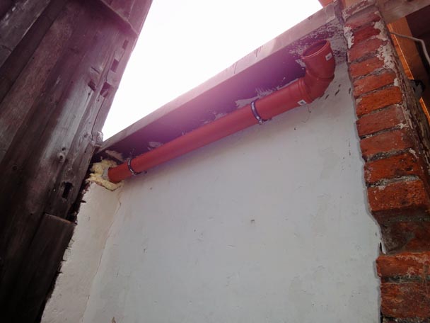 Ich hatte dann in unserer Scheune noch Arbeit mit der Umlegung des Dachrinnenabflusses und der Einbindung der neuen Dachrinne.