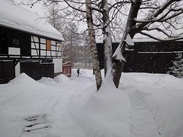 Unsere Lieblingsbeschäftigung wurde das Schneeschippen. Ende Dezember wurde es langsam so viel, das selbst bei uns auf Arbeit, wie an anderen Orten auch, die Dächer wegen Einsturzgefahr mit viel Aufwand beräumt werden mussten.