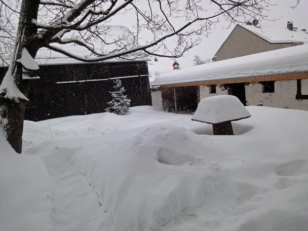 Der Winter hatte uns jedenfalls von Januar bis Ende März mit durchgängig viel Schnee und klirrenden Temperaturen im Griff. Außer Holz sägen und hacken ist nicht so viel geworden. Außerdem muss diese Homepage ja auch irgendwann zurechtgebastelt werden. Sie ist zur Zeit 32 MB groß und besteht aus 532 Dateien.