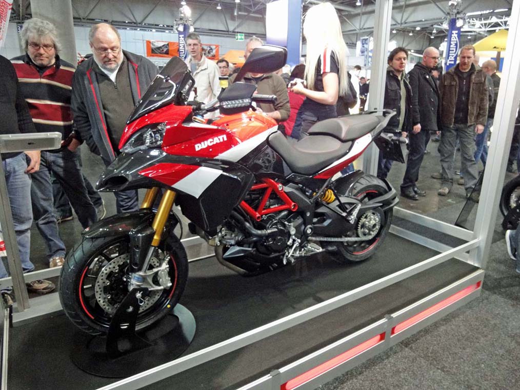 Ehrfurchtsvoll gesenkte Häupter bei Ducati - die neue Multistrada in Sonderlackierung. Leise tropft der Speichel aus offenen Mündern der leicht ergrauten Männergeneration - wieso bekomme ich zu Weihnachten immer nur Rasierwasser und Strümpfe mag sich mancher wohl überlegen. Ich wäre doch sooo einfach zufrieden zu stellen.