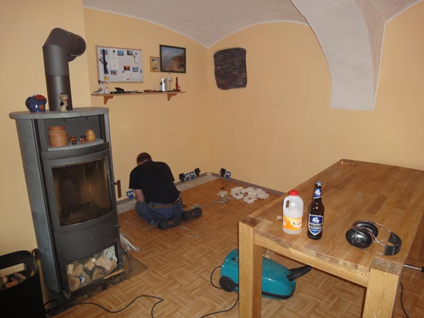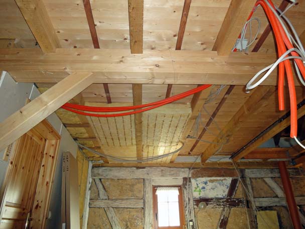 Danach fing ich an, mich mit der Elektroinstallation zu beschäftigen und die Decke zum kalten Boden zu dämmen.