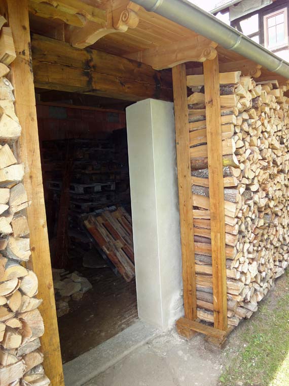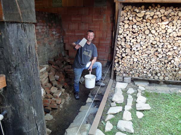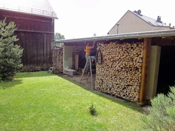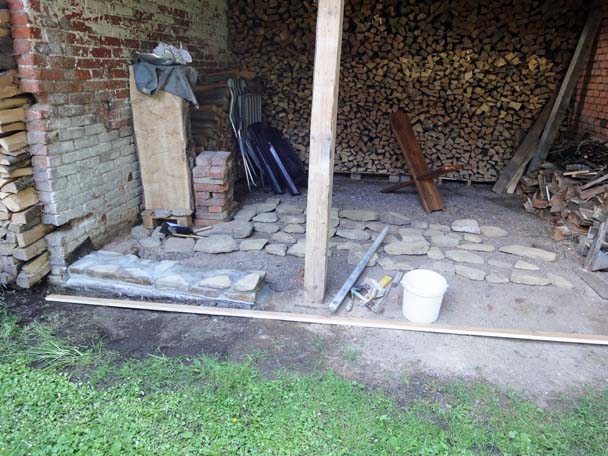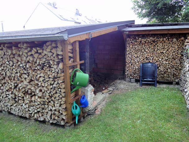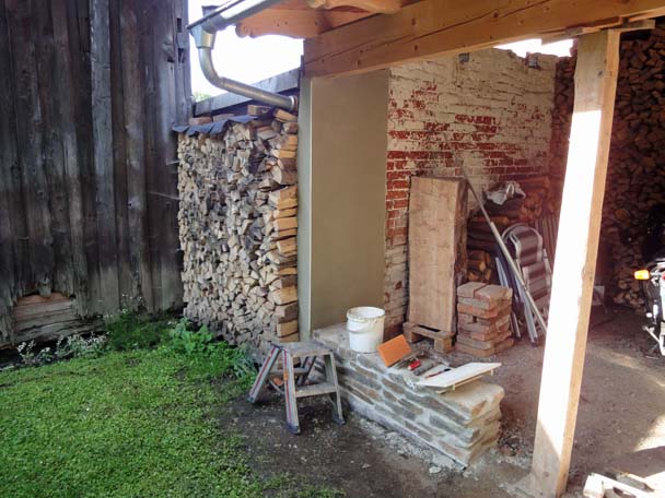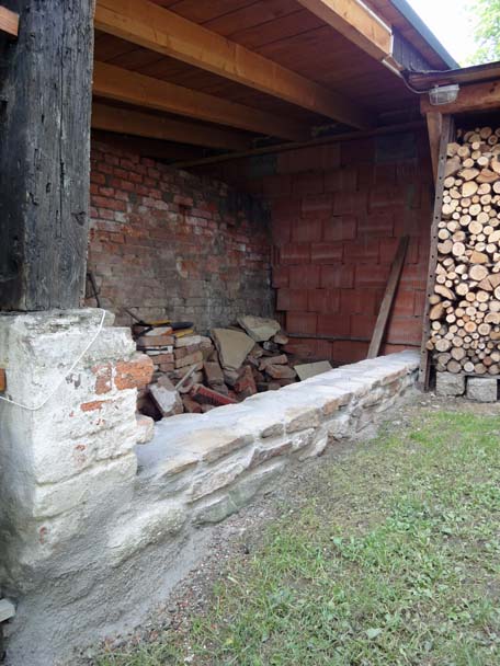 Als das Wetter im Frühjahr besser wurde, zog es mich hinaus in den Hof. Der linke Teil des Nebengebäudes war eigentlich nur ein großes Loch mit einem provisorischen Balken zur Abstützung. Zwar haben wir noch keine direkte Verwendung für diesen Raum, aber Platz hat man ja bekanntlich nie genug.
