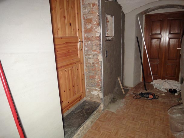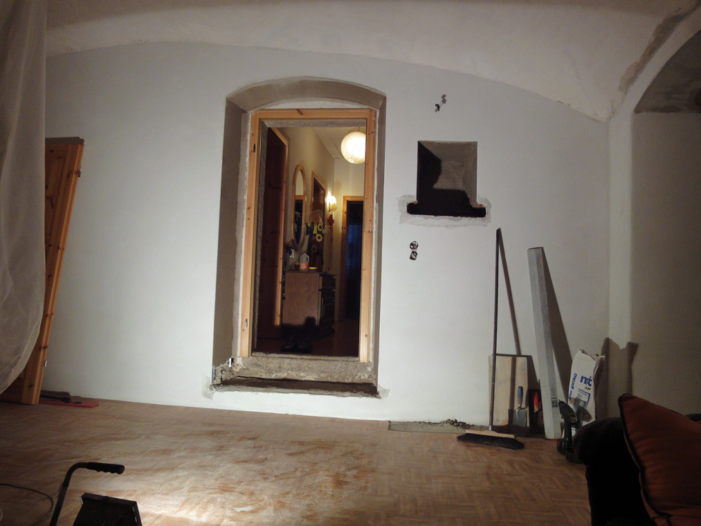 Also beschäftigte ich mich wieder als Maurer mit dem auf mauern der Türenlaibung und verputzen.