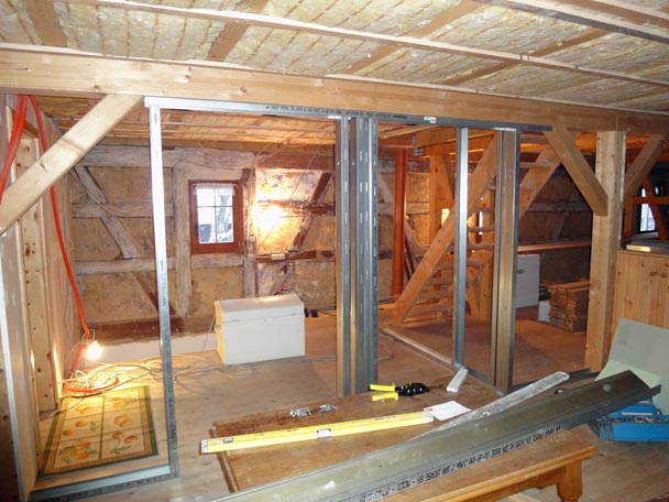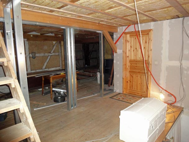 Inzwischen fing ich mit dem Trockenbau vor unserem Schlafzimmer im Obergeschoß an.