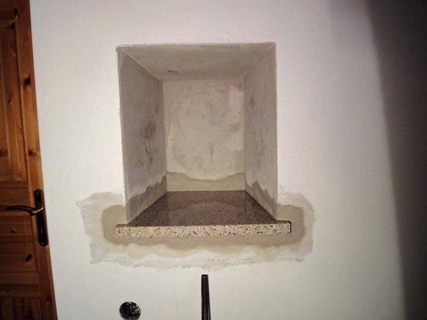 Und da wir einmal dabei waren, wurde gleich noch die alte Trittstufe zum Flur und in der Wandnische die Sohlbank ausgebaut und neu bestellt.