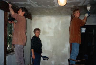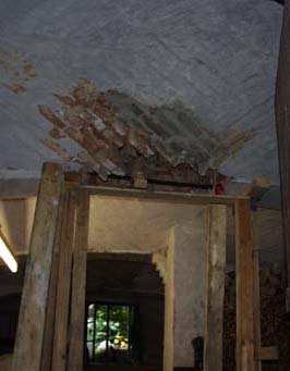 Auskalken zwecks Desinfizierung des stellenweise sehr stark verschimmelten Gewölbes. Auch die Frontansichten aller Gebäude des Hofes wurden so behandelt.