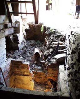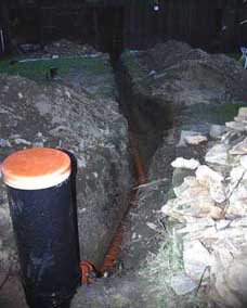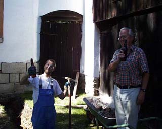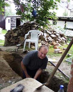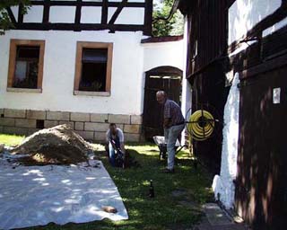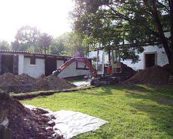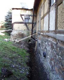 Solange es die Temperaturen Ende 1999 zugelassen haben, wurde zwecks Trockenlegung hinter dem Haupthaus ab geschachtet. Um das drückende Hangwasser in den Griff zu bekommen, sollte der Graben eine Tiefe von 2 m erreichen .