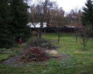 Herbstputz des Grundstückes , fällen von mehreren alten Bäumen und anpflanzen von Neuen .