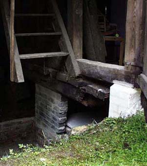 Das Setzen der Säulen wurde dringend notwendig, weil eine Ecke der Scheune anfing abzuwandern .