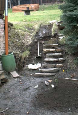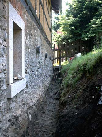 Ansonsten schachteten wir wieder mal etwas hinter unserem Haus zwecks Trockenlegung. Hier und dort war überall etwas zu tun. So zum Beispiel auch die Sanierung unserer Gewölbebögen oberhalb.