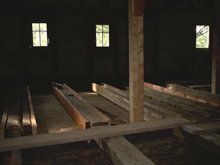 Ausgleichen unserer Balken im 1. Stock. Aufbringen Dielung in dem Teil, in dem die neuen Kinderzimmer entstehen werden.