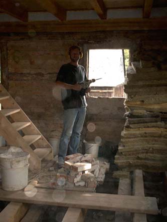 Zusetzen Fachwerk mit Gasbeton im Dachgeschoss.