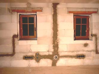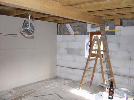 - Vormauern 24´Gasbetonwände vor die 12´Fachwerk Außenwand wegen Wärmedämmung