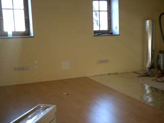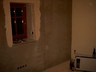 - Malern des Zimmers, aber noch kein Tapezieren wegen der Restfeuchte