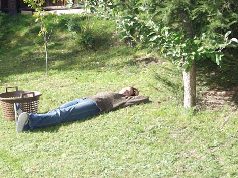 Natürlich arbeiten wir nicht immer. Es gibt nichts schöneres, als sich auch einfach mal in der Wiese fallen zu lassen, und keiner schaut hinter verborgenen Gardinen zu, wie es bei unseren vergangenen Mietwohnungen halt so war.