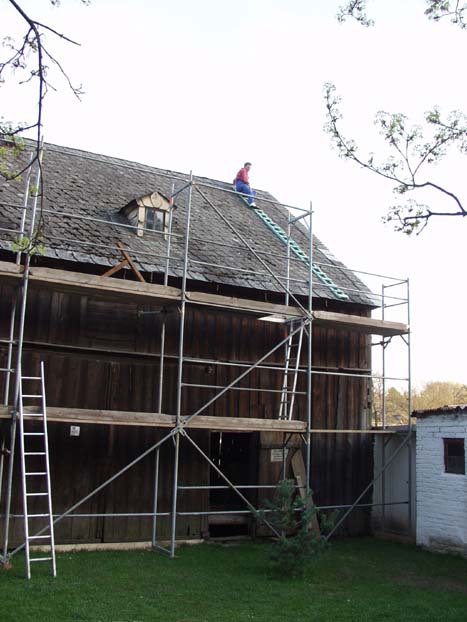 Bei den Aufräumungsarbeiten beging ich den Fehler, im Nebengebäude mal unters Dach zu schauen. Hätte ich nicht tun sollen ! Nun ja, wird wohl mal Zeit, das dritte Dach in Angriff zu nehmen.