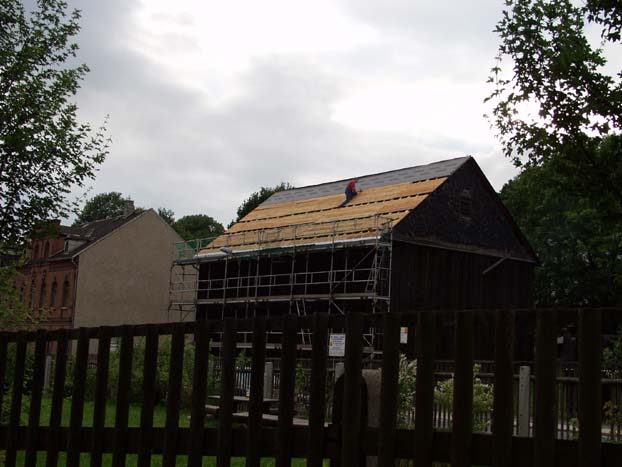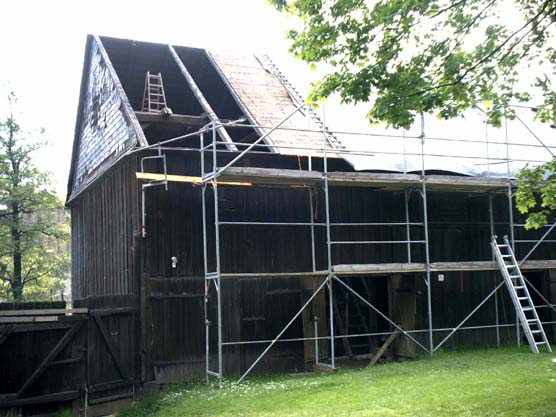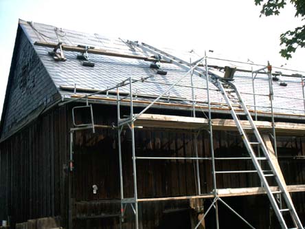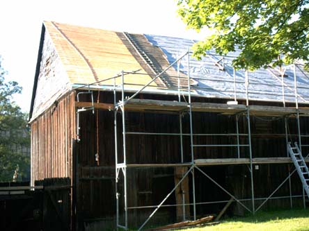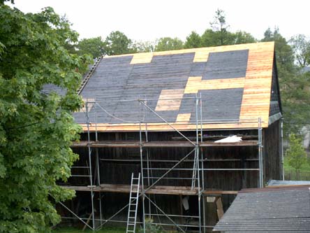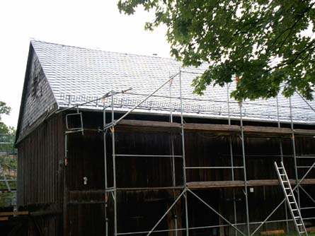 Nach dem die Firma Ritter aus Reichenbach das Dach mit Naturschiefer wieder eingedeckt hat, ist unsere Scheune nun wieder ein Ort, den man bei Regen ohne Regenschirm betreten kann.