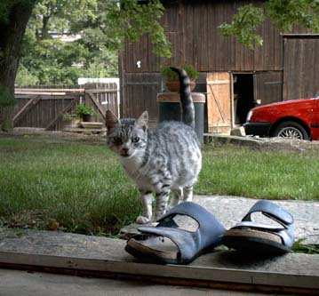 Die einzigen, die beim fotografieren ruhig halten, sind Petra und die Katze. Letztere hat sich wohl etwas zu nahe an meine Sandaletten herangewagt und dabei Betäubungsgas geschnuppert.