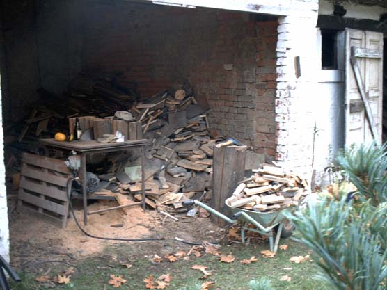 Im September ging es dann an allgemeine Aufräumungsarbeiten. In der Hektik des Dachbaues hatten wir alles nur in die umliegenden Schuppen geschmissen. Das abgerissene Holz wurde auch angefangen zu sägen. Der nächste Winter steht ja auch schon bald vor der Türe.