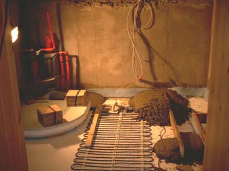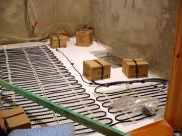 Ansonsten fummelten wir noch etwas an unserem zukünftigen Fußboden im Bad rum. Ordentliche Wärmedämmung, Fußbodenheizung und Heizestrich mit versenkter Duschtasse.