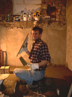 Aber weil wir auch von einem schönen Bad mit Dusche träumen, konnte ich natürlich in den Anfangsmonaten des Jahres nicht still sitzen. Also spielte ich wieder einmal etwas Klempner, Elektriker und Maurer in unserem zukünftigen Bad. Eine echte Herausforderung bei krummen Mischmauerwerk - Wänden mit bis zu 15 cm Putzstärke. Wie soll das nur gehen, meinten unsere Besucher. Mit etwas Arbeit, angleichendem Vormauern an die alten Wände und dann verputzen.