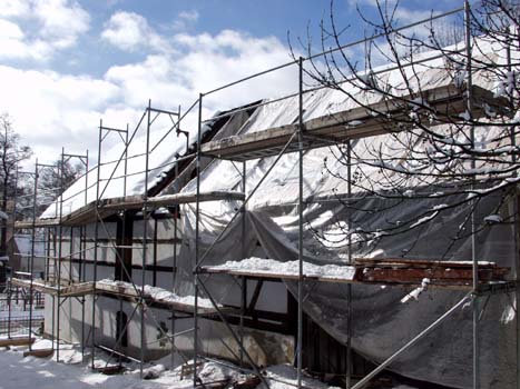 Der Januar war dieses Jahr so mild, das ich ehrlich gesagt schon dachte, wir können den Winter überspringen. Auch einige Krokusse liebäugelten damit und streckten ihr erstes Grün aus der Erde. Also stellte ich frohen Mutes schon mal das Gerüst in diesem Jahr das Erste mal an unser Nebengebäude. Denn die Aufgabe ist klar : das 3. Dach ist das erklärte Ziel dieses Jahres. Das ist eigentlich ein Jahr früher wie geplant, aber um das Gebäude zu retten bleibt uns keine andere Wahl. Man sagt ja, der Mensch wächst mit seinen Aufgaben.