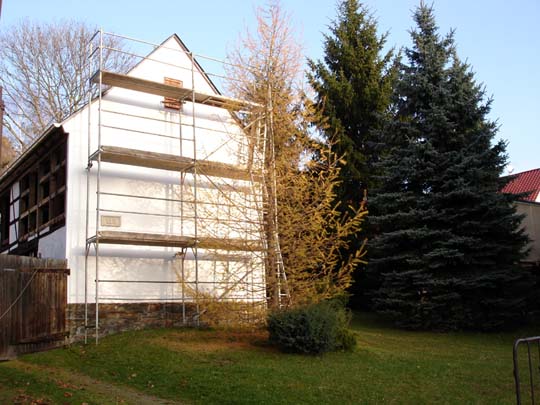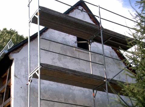 Da im September noch super Wetter war, hat es mir doch noch mal ein wenig in den Fingern gejuckt. Also stellte ich das das Gerüst das 6. Mal dieses Jahr vom Nachbarn an den Giebel unseres Nebengebäudes.